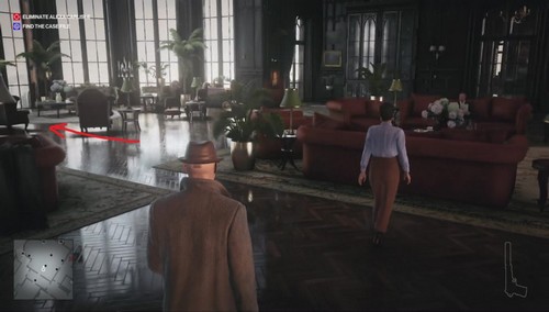 Vous la trouverez dans le salon – l’immense pièce du rez-de-chaussée donnant sur le jardin.  vous devrez attendre qu’elle s’approche de la fenêtre. Elle sera hors de vue des autres, vous pouvez donc la maîtriser en toute sécurité ici et saisir la clé qu’elle laisse tomber.