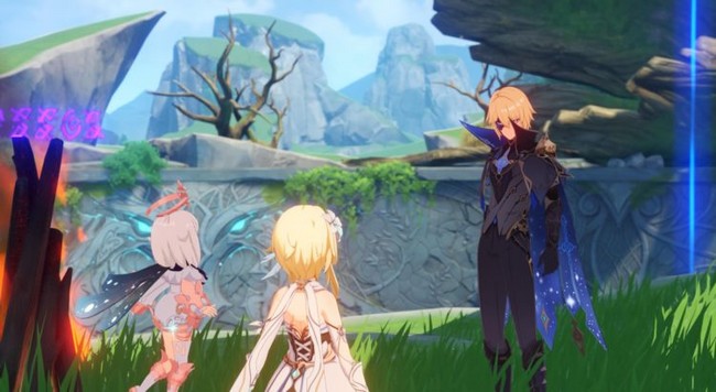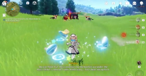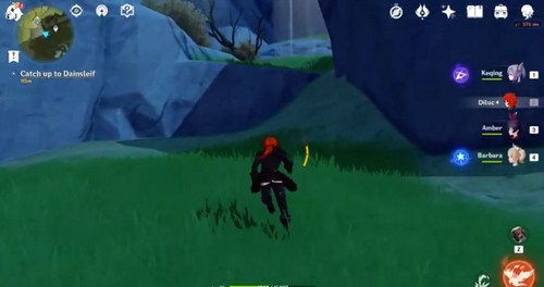 Lorsque vous avez terminé, glissez en utilisant le courant du vent pour atteindre votre nouveau copain. Le Voyageur pourra interagir avec un pissenlit qui éclaire une cinématique de l’ouverture de Genshin Impact .