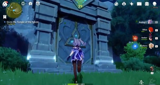 Quoi qu’il en soit, Dainsleif vous dira qu’il chasse des monstres. Cela vous amène à une courte promenade dans le temple du Faucon.