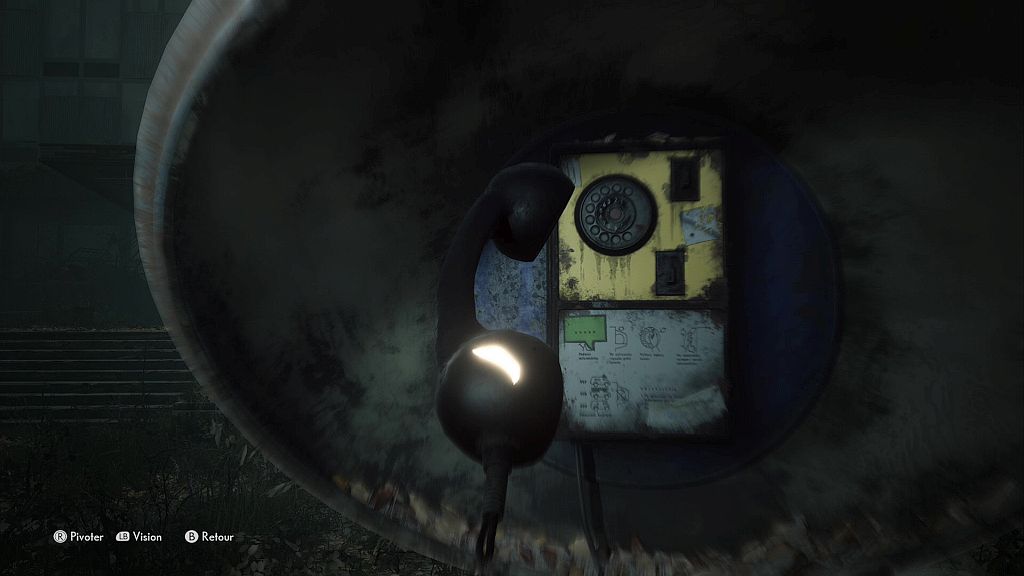 En vous rapprochant de l’hôtel, Marianne sera frappée par une explosion d’énergie (?) De l’autre côté. Lorsque vous vous approchez, le téléphone à proximité se met à sonner. Approchez-vous, décrochez le téléphone, activez votre vision et faites pivoter l’objet. Vous recherchez un élément lumineux qui activera un enregistrement vocal. Ceux-ci sont connus sous le nom d’échos et sont l’un des objets de collection de The Medium.