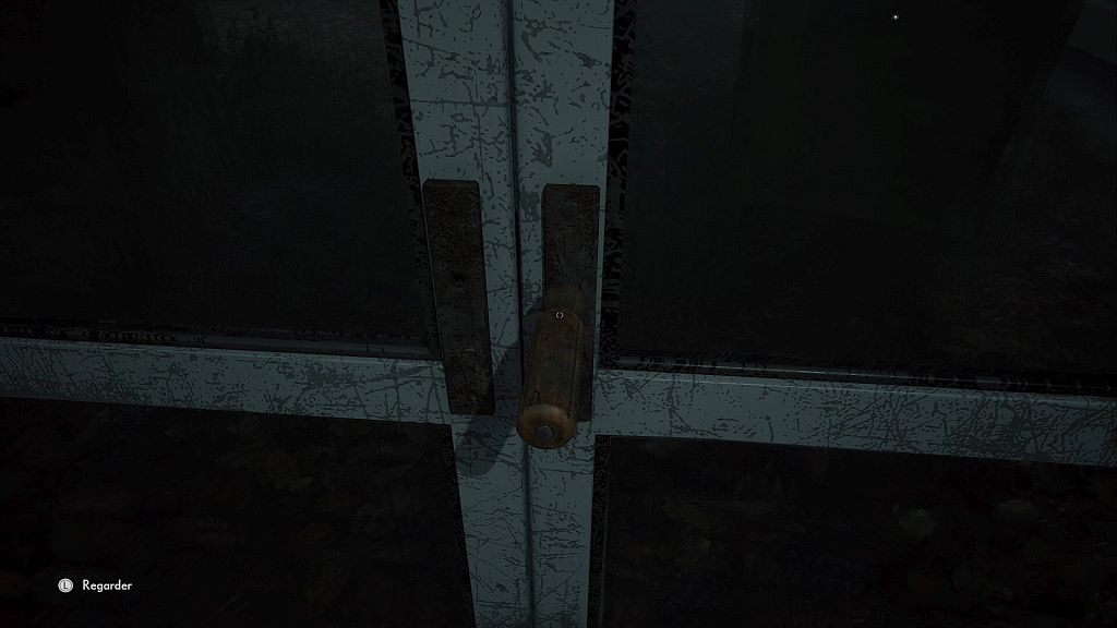 Nous sommes devant la porte, mais nous ne sommes pas encore à l’intérieur. Il y a une carte immédiatement à votre droite, une porte verrouillée juste en face de vous et une salle de sécurité à gauche. À l’intérieur se trouve une carte postale à collectionner sur le sol dans une valise : prenez-la avant de sortir. Montez sur la benne à ordures et grimpez par-dessus la clôture.