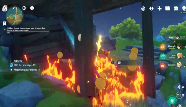 Vous découvrirez qu’il n’utilisait en fait qu’un sceau de permission pour les chasser, alors vous devrez utiliser votre vue élémentaire pour trouver les traces des autres brutocollinus. En atteignant le point désigné, vous rencontrerez Xiao.