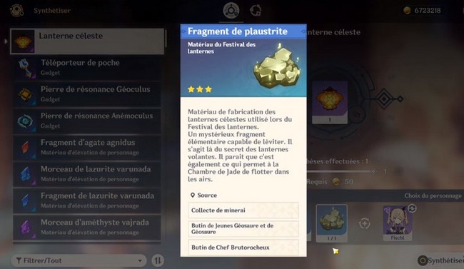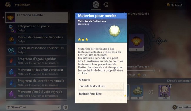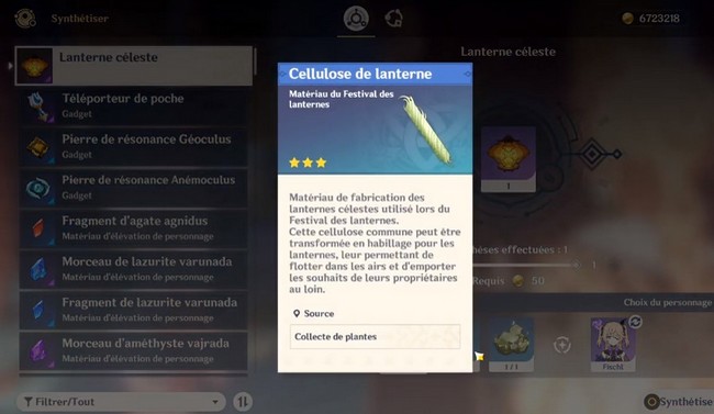 Fabriquer une Lanterne Céleste dans Genshin Impact