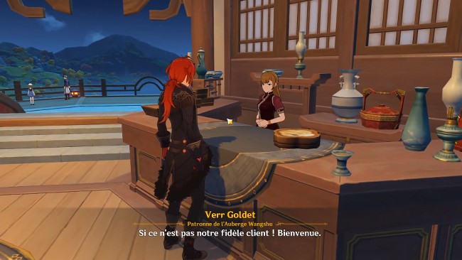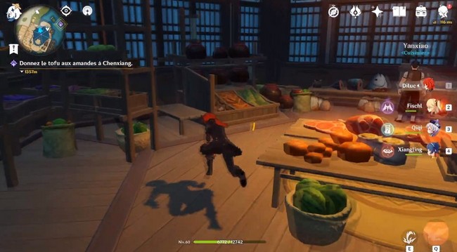 Rendez-vous à la réception de l’auberge puis descendez dans la cuisine où vous verrez Yanxiao (le cuisinier). Si vous regardez l’image ci-dessous, cet endroit lumineux juste à côté de lui est l’endroit où vous trouverez la recette de tofu aux amandes.