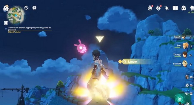 Sur votre carte, vous verrez la zone générale que vous devez rechercher. Pour y arriver, l’emplacement dont vous avez besoin pour disperser les graines est au-dessus du bâtiment de la guilde des aventuriers. Ici, vous verrez un point lumineux tout en haut. Dispersez les graines à cet endroit pour atteindre cet objectif.