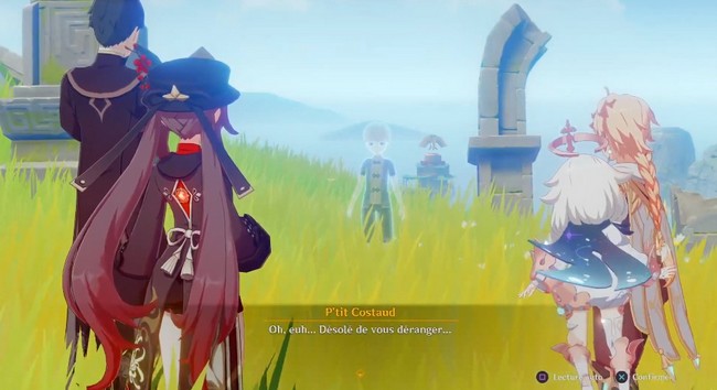 Dirigez-vous vers le Funérarium Wangsheng et parlez à Meng. Cela déclenchera une conversation entre Meng et Hu Tao. Cette dernière va informer Meng qu’elle n’a pas trouvé P’tit Costaud. Mais qui est ce P’tit Costaud ?