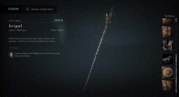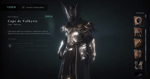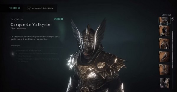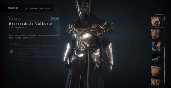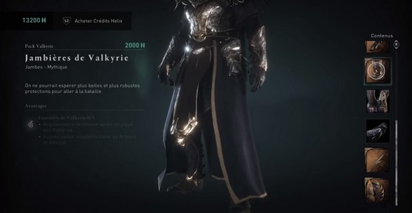 L’ensemble d’armure Valkyrie se trouve dans le pack Valkyrie pour 2000 crédits Helix. En argent réel, c’est environ 20 dollars selon la façon dont vous obtenez ces crédits. Vous obtenez ce qui suit: