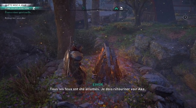 Lorsque vous reviendrez à Ake, il mentionnera l’étape suivante. Cette étape consiste à le suivre dans la forêt. Suivez Ake jusqu’au l’infâme totem. Si nécessaire, attendez la tombée de la nuit.