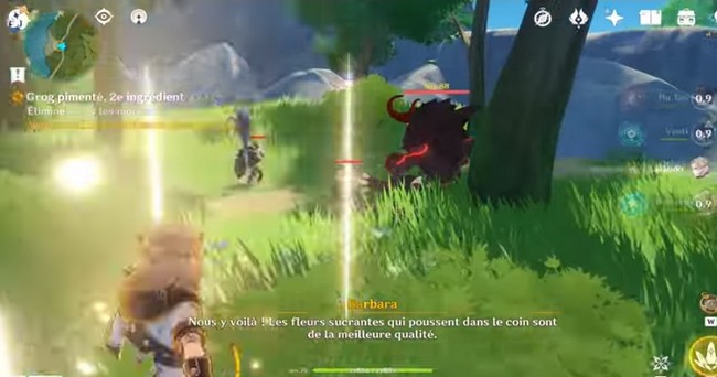 Ensuite, attendez Barbara dans le parc prés de la Guilde des aventuries pour terminer la quête en buvant le grog et pour obtenir le succès La légende pimentée de Mondstadt.