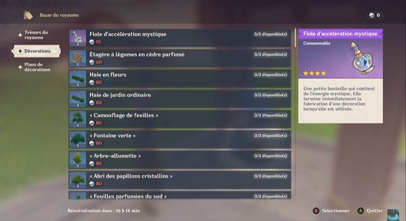 Pour modifier la disposition du royaume Sérénithéière dans Genshin Impact, vous devez augmenter votre niveau de confiance à un certain niveau. Nous ne savons pas encore quel niveau vous devez atteindre, car il est encore tôt et nous ne sommes pas allés aussi loin, mais le jeu vous dit que c’est ce que vous devez faire. Vous pouvez aussi utiliser de la monnaie (pièce du royaume), mais nous ne savons pas exactement combien. Gardez simplement à l’esprit que changer la disposition de votre royaume n’est que de la vitrine. Pourtant, si vous êtes fatigué de votre retraite à la montagne et que vous voulez changer pour une île tropicale, cela vaut la peine de s’y pencher.
