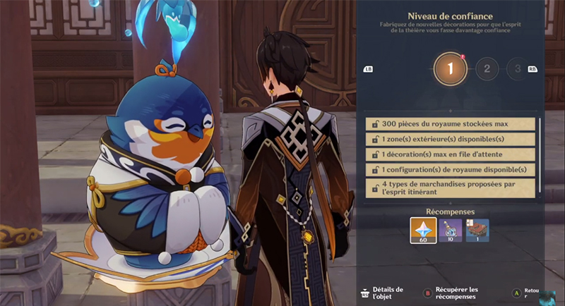 Pour augmenter votre niveau de confiance Genshin Impact dans le royaume de la Sérénithéière, vous devez continuer à fabriquer de nouveaux meubles. Chaque fois que vous créez un meuble pour la première fois, votre niveau de confiance augmentera. C’est lent au début, mais au fur et à mesure que vous progressez, cela ne cessera de s’accélérer. Plus le niveau est élevé, plus vous débloquez des éléments intéressants, tels que d’autres zones du royaume et plus encore.