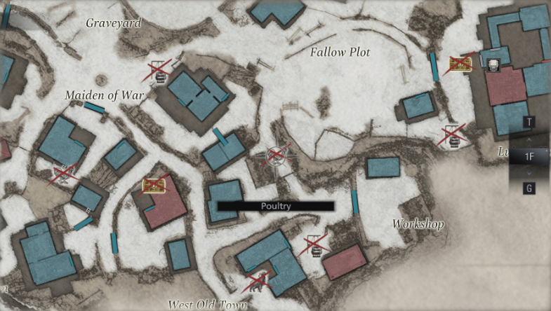 Vous pouvez trouver et traquer les poulets dans le village une fois que vous avez terminé le château de Dimitrescu. Ces poulets peuvent être trouvés dans des lots et de petits espaces.