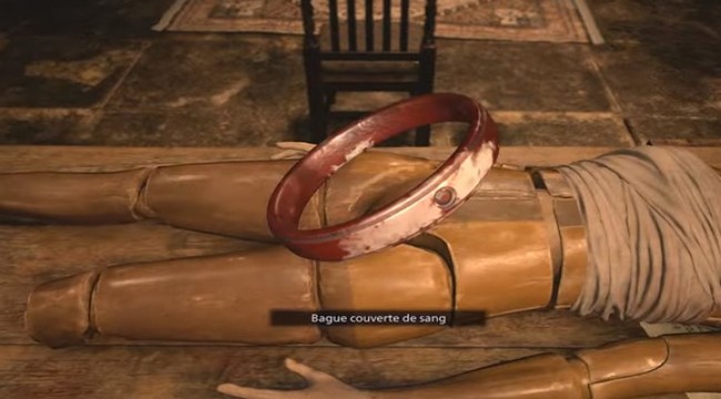 1. L’examen de la main gauche montrera un anneau que vous pouvez retirer, vous donnant la Bague couverte de sang