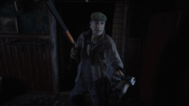 Une fois les ennemis éliminés, ou si vous choisissez de les éviter, cherchez une petite maison à droite de la porte scellée en haut du champ, et entrez pour trouver d’autres survivants cachés à l’intérieur. Ils essaient également d’atteindre la maison de Luiza.