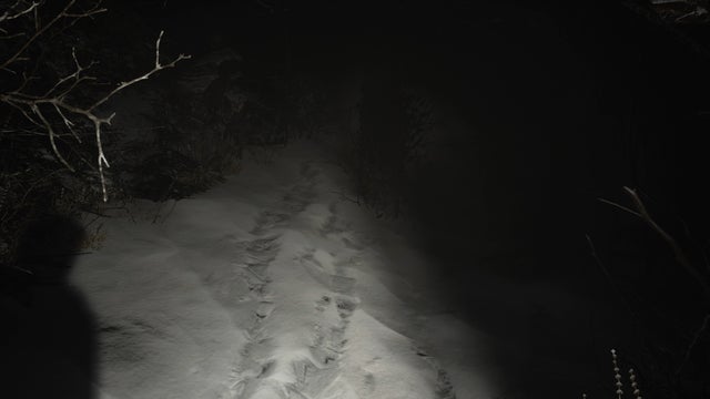 Suivez la trace laissée par quelqu’un qui s’éloigne de l’accident dans les bois sombres. Vous ne pourrez pas distinguer grand-chose en avançant, alors essayez de ne pas vous laisser impressionner par les bruits à proximité.