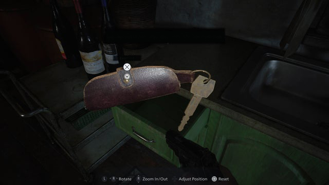La plupart des tiroirs sont vides, à l’exception d’un tiroir inférieur avec quelques Lei, et la Clé du pick up à gauche de l’évier. Une note à proximité, alors inspectez-la pour trouver un fermoir à ouvrir et révéler un tournevis. Avant de partir, fouillez l’arrière de la cuisine pour trouver des Cartouches pour fusil, puis retournez voir Elena et le camion.