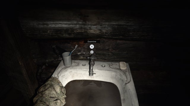 Arrêtez l’évier qui fuit ou passez à côté lorsque vous vous déplacez dans la pièce voisine pour trouver un placard également vide, puis tournez et suivez la traînée de sang dans le couloir menant à un sous-sol.