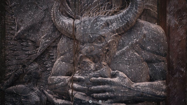 Ignorez la vieille dame et assurez-vous d’utiliser le point de sauvegarde dans l’église, puis dirigez-vous vers la porte et insérez à la fois les deux morceaux de reliefs, et tournez-les jusqu’à ce qu’ils soient dans la bonne direction.