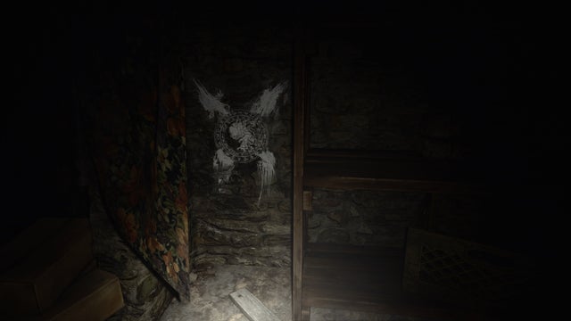 En parlant de choses inquiétantes, un tas de planches de bois tombera au fur et à mesure que vous avancez, et vous pouvez tourner à gauche pour voir qu’elles obscurcissaient une esquisse très inquiétante d’un être avec quatre ailes sur le mur.