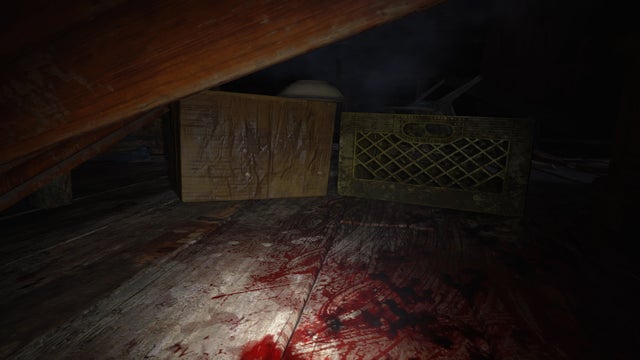 En entrant dans la grande maison inquiétante, vous devriez remarquer une caisse éclaboussée de jaune sur la droite – et plus haut se trouve l’outil pour l’ouvrir, un couteau. Vous pouvez maintenant détruire la caisse pour obtenir un médicament de premiers soins.