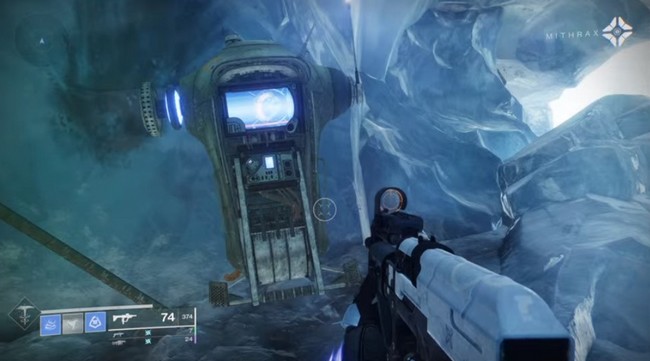 Lorsque vous entrez dans la grotte, vous déclenchez un nouvel objectif pour trouver Mithrax. Suivez le chemin de la grotte jusqu’à ce que vous rencontriez un terminal sur votre gauche avec lequel vous pouvez interagir. Interagissez avec ce terminal pour déclencher une interaction avec Mithrax et Ikora. Après cette interaction, vous recevrez un nouvel objectif de quête.
