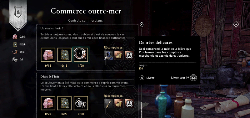 Vous obtenez les matériaux nécessaires en capturant des comptoirs marchands, qui sont marqués sur la carte. Le premier comptoir marchand est liée à l’histoire de la quête principale « Prise de Rathdown« . Chaque comptoir marchand produit automatiquement un type de matériau au fil du temps. Vérifiez le coffre qui se trouve devant Azar pour piller les matériaux rassemblés. Donnez-les ensuite à Azar pour qu’elle termine ses contrats commerciaux et augmente la renommée de Dublin.
