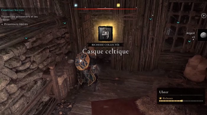 Une fois que vous avez la clé de prison, descendez en bas et ouvrez toutes les cellules. Allez dans chaque cellule et libérez les prisonniers. En fouillant, dans la prison vous allez trouver le Casque Celtique.