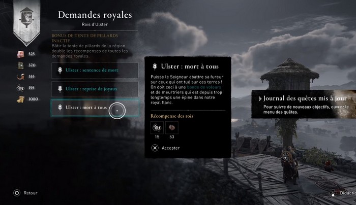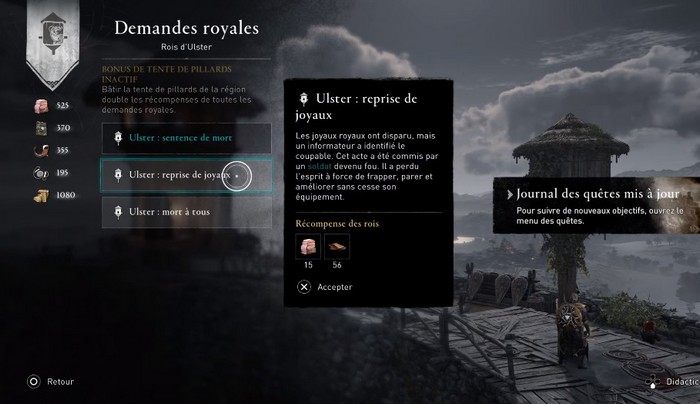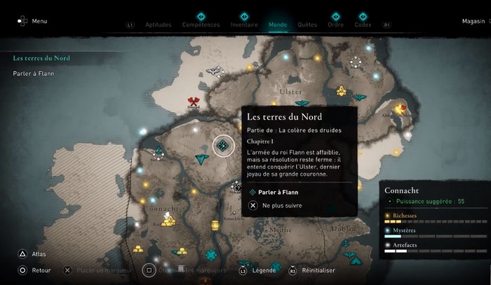 Après avoir vaincu la maudite, vous débloquerez une nouvelle quête intitulée « Les terres du Nord« . Dans cette quête, vous retournez voir Flann pour discuter de son armée. Cette discussion porte sur le renforcement des faveurs en Ulster, comme nous l’avons fait plus tôt en Midhe. Pour cela, nous devons accomplir d’autres demandes royales dans la région.