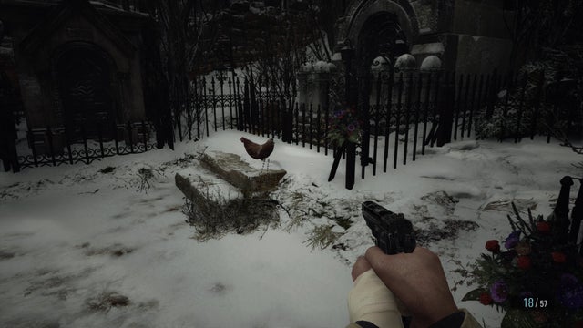Derrière l’église se trouve un petit cimetière que vous pouvez maintenant ouvrir avec la Clé en Fer Forgé, menant à une petite zone avec quelques mausolées, et plusieurs poulets que vous pouvez étriper pour obtenir 3 Volailles. N’oubliez pas de revenir voir le Duc plus tard pour apprendre comment lui donner de la viande pour améliorer de façon permanente votre santé et d’autres capacités.