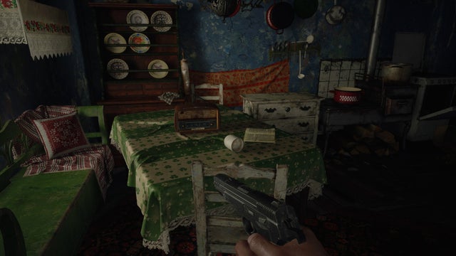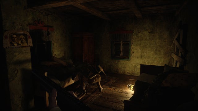 Malheureusement, il semble que l’homme de la maison soit parti, mort, ou qu’il soit le Lycan qui mange actuellement une femme dans l’autre pièce. Quoi qu’il en soit, tuez la bête, et ouvrez l’armoire voisine pour les munitions de pistolet.