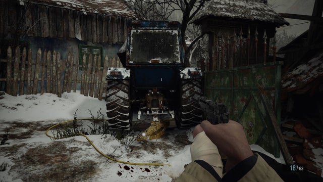 En bas de la route vers la maison à la cheminée rouge, il y a deux Lycans qui attendent près d’un tracteur – essayez de tirer sur celui du dessus pour lui exploser la tête, puis tuez son ami qui vient vers vous. Après eux, il y en a quelques autres dans la rue que vous devrez affronter, mais laissez-les venir à vous, et essayez d’utiliser votre fusil à pompe lorsqu’ils se regroupent dans le couloir étroit.