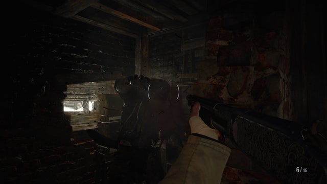 Descendez et déverrouillez l’autre porte de la cour avant d’entrer dans la petite grange où vous pouvez écarter une barricade – mais soyez prêt pour un Lycan de l’autre côté.