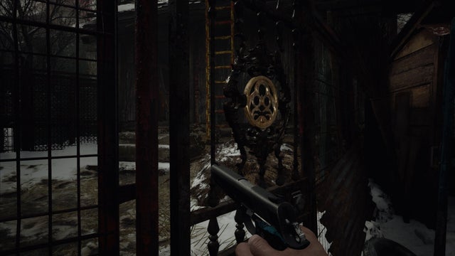 Avant d’aller plus loin, vous pouvez vérifier une petite cabane à proximité et chercher dans les tiroirs de la Ferraille, un point de sauvegarde et le document « Mot d’un artisan ». Par la fenêtre arrière, vous trouverez un puits et des toilettes extérieures où vous pourrez chercher de la poudre noire. Pour continuer, entaillez la porte verrouillée avec votre couteau pour faire sauter le verrou.