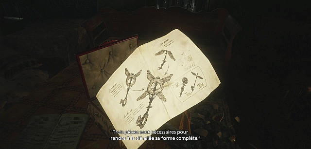 Ce ne sera pas une totale perte de temps, car la table de la cuisine voisine contient le document Journal d’Eugen, et une boîte avec une note sur la façon dont la Clé Ailée peut être améliorée – et il se trouve qu’elle contient les pièces pour en faire une Clé à quatre ailes !
