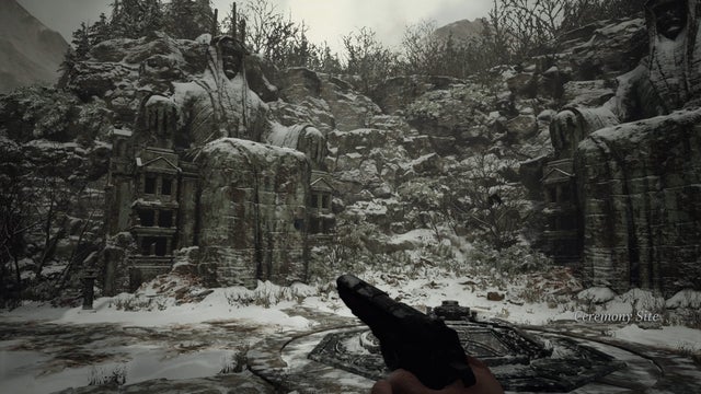 En quittant la Tour du culte après avoir vaincu Dame Dimitrescu, notez le grand pont-levis sur la gauche qui a été levé.
