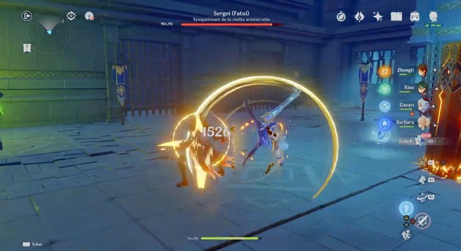 Après ces premiers Fatui, un Hydro et un Electro Fatui apparaissent. Récupérez-les et dirigez-vous vers le nord. Utilisez votre compétence élémentaire sur le piédestal et montez sur la plateforme pour atteindre la dernière arène où vous affronterez Sergei (Fatui).