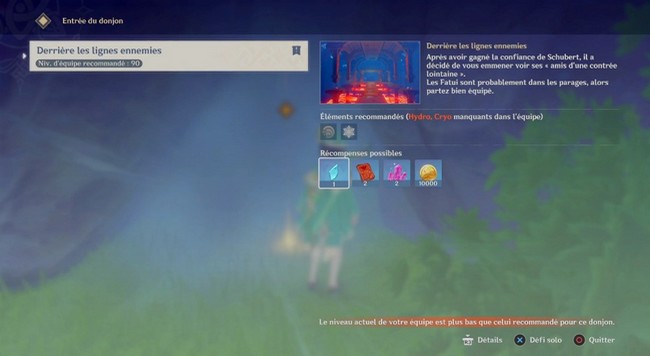Dirigez-vous à l’intérieur et suivez Schubert plus profondément dans ce donjon. Regardez les scènes quand vous y arrivez et après la deuxième, vous devrez combattre des Fatui. Débarrassez-vous d’eux !