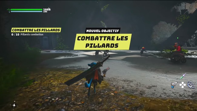 Au cours de cette séquence, vous apprendrez à vous engager dans le combat, y compris à utiliser votre arme, à esquiver, à parer et à utiliser votre capacité spéciale. Après avoir compris les bases, vous devrez vous enfuir car vous n’êtes pas encore apte à combattre cette bête géante. Dirigez-vous vers le marqueur jaune sur votre écran.