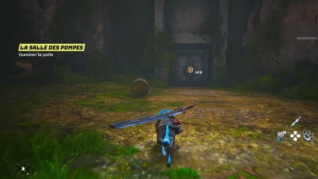 Après avoir vaincu les ennemis, allez dans la porte métallique à proximité pour continuer.