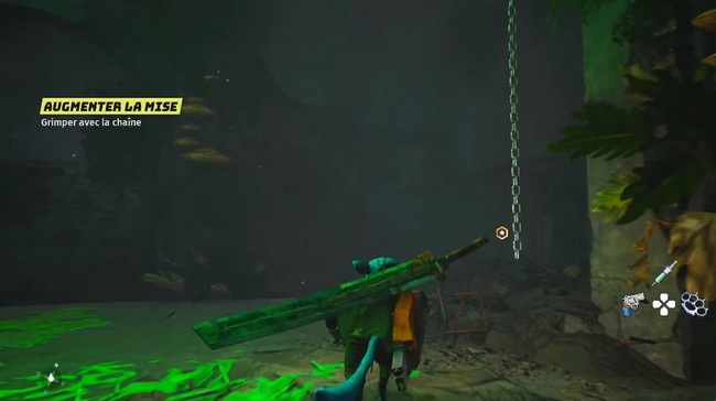 Revenez dans le couloir principal et approchez-vous de la chaîne pour sauter automatiquement vers elle et commencer à grimper vers le haut. Avancez pour un autre bref rappel de tutoriel sur la parade avant de vous lancer dans un autre combat.