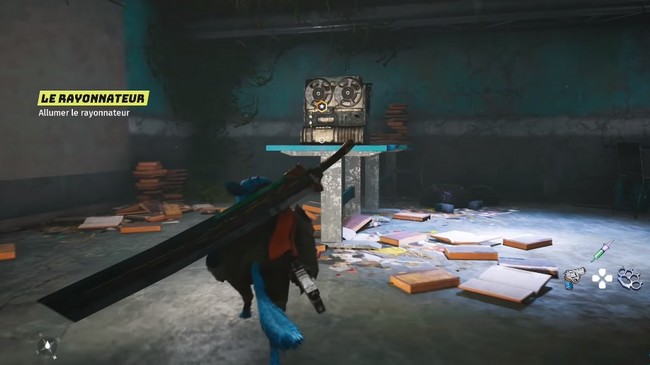 Dans la pièce suivante, il y a un rayonnateur sur la table à droite. Approchez-le et interagissez avec lui pour commencer un puzzle.