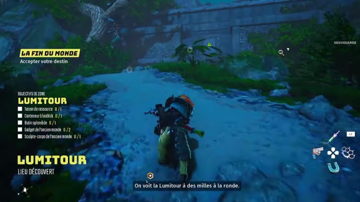 Une fois que vous atteignez cet endroit, vous devez grimper à l’intérieur du Lumitour en utilisant les points d’escalade jaunes. Au sommet de la tour, interagissez avec la manivelle pour déclencher une quête secondaire appelée Lumitour.