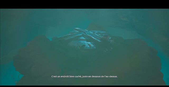 Lorsque vous entrez dans l’ouverture en forme de grotte, vous trouverez un véhicule spatial au centre. Descendez dans la zone caverneuse et montez à bord du vaisseau spatial pour parler avec le Fossile.
