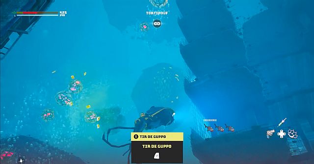 Tortipouf se retirera dans sa coquille et secouera un tas de mines explosives qui flotteront vers vous dans l’eau. Vous serez invité à libérer les Guppos avec la gâchette gauche. Les Guppos chercheront les mines à proximité et les feront exploser pour vous. Veillez à ne pas être pris dans l’explosion, sinon vous subirez de gros dégâts, ou vous mourrez tout simplement.