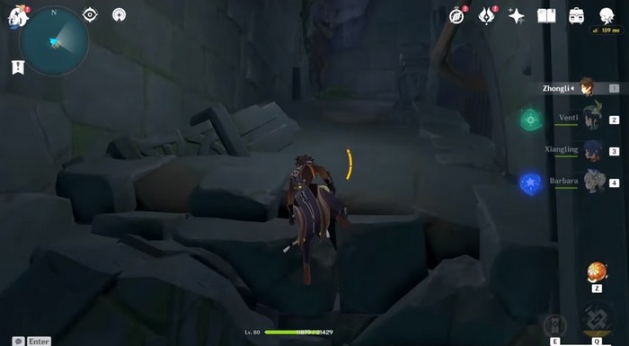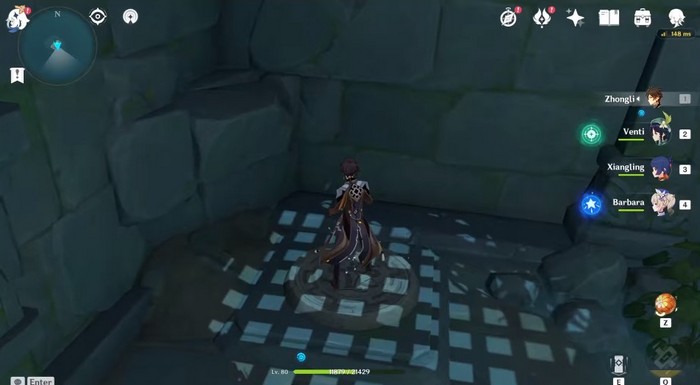 Allez tout droit et interagissez avec l’autre tablette en pierre, en suite vous devez monter sur la plate-forme devant stèle pour ouvrir une porte.
