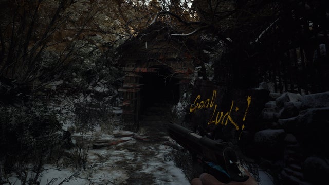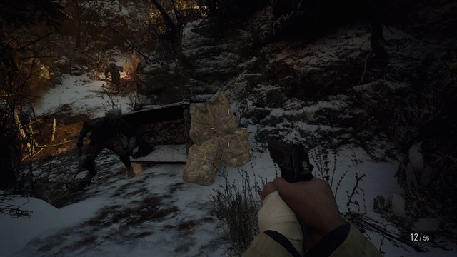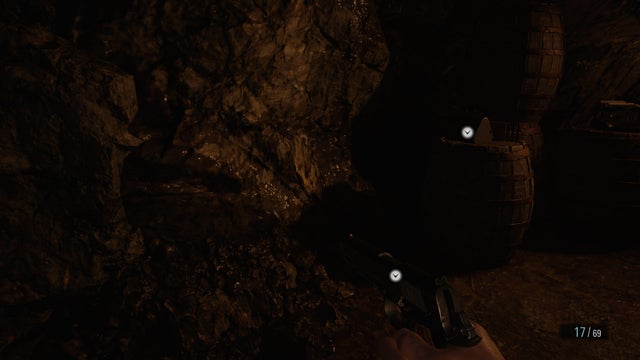 En traversant le passage étroit et en regardant les Lycans se nourrir, vous déboucherez dans une petite grotte. Prenez le Remède de premiers soins sur la droite, des Bombes tuyau et des Cartouches de fusil sur la gauche, et cherchez le document Journal d’un officier sur le sol avant d’utiliser le point de sauvegarde voisin.
