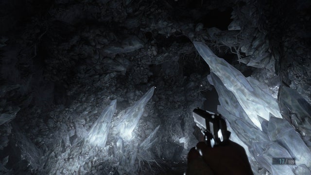 Dans la chambre au-delà se trouve une grande formation de cristaux pleine de joyaux. Inspectez soigneusement l’endroit et abattez les points lumineux pour obtenir quatre fragments de cristaux, une Vivianite, un Amas de cristaux et un Quartz jaune.