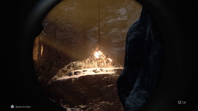 Dirigez-vous vers le groupe de corps en feu pour trouver une plante, et regardez devant vous pour repérer quelques autres Lycans qui attendent le long des crêtes – s’ils ne bougent pas encore, tirez quelques coups de sniper pour éliminer le troupeau avant d’éliminer le reste. Il y a aussi une autre plante qui pousse sur le mur à l’extrême gauche.