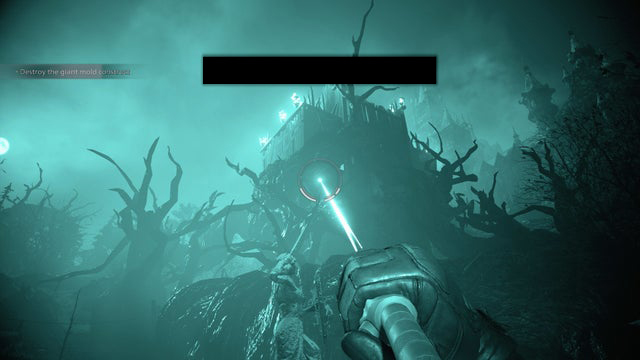Lorsque vous atteindrez au moins la place du Village, vous pourrez enfin commencer à utiliser votre dispositif de ciblage laser pour faire de gros trous dans le Megamycète au cimetière. Vous devrez tenir le dispositif de visée jusqu’à ce qu’il soit complètement terminé et ne pas rompre la ligne de vue – de plus, il a un long temps de recharge.