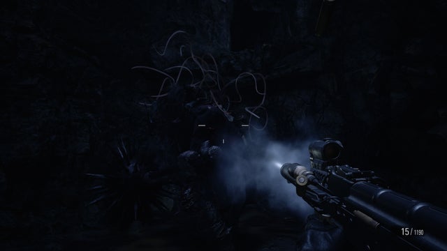 Enfin, lorsque les frappes aériennes auront fait un trou dans la masse grouillante, vous pourrez descendre sous terre. Prenez quelques provisions supplémentaires en vous dirigeant vers l’intérieur, mais soyez prudent – quelque chose d’autre vous attend ici-bas.